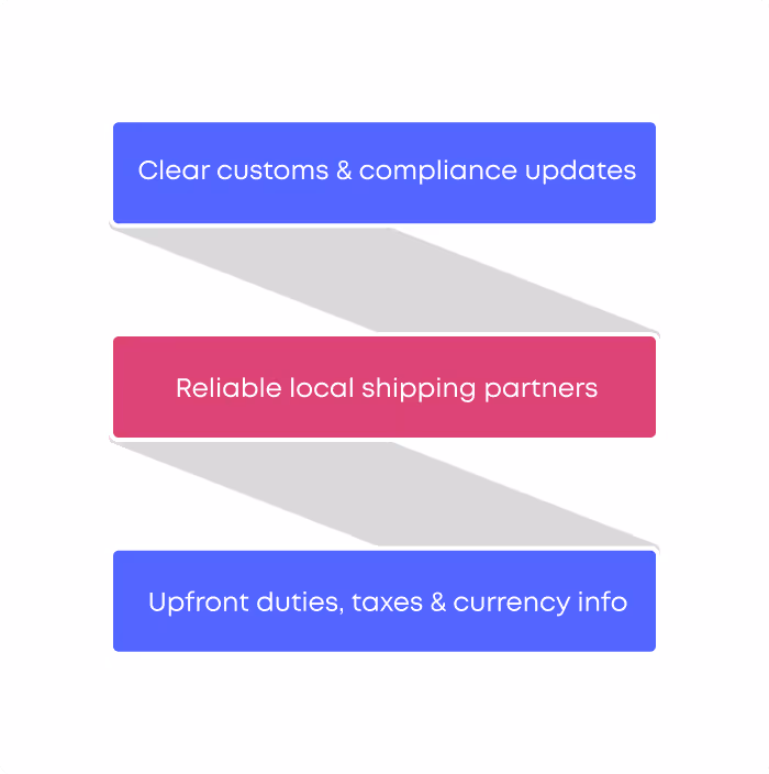 Clear communication about duties, taxes, and fees prevents confusion and dissatisfaction.One of the most common friction points in cross-border transactions involves unexpected costs, such as currency conversion fees, duties, and taxes.
