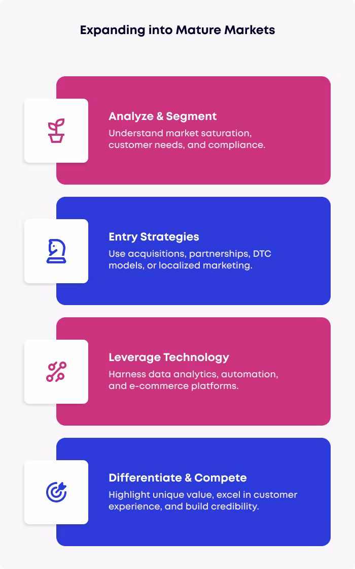 Expanding into mature markets begins with thorough research and detailed market insights. Companies need to understand both consumer behavior and competitive dynamics: