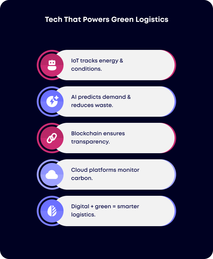 Modern logistics systems integrate all this data into centralized cloud dashboards, where organizations can monitor carbon metrics, waste performance, and renewable energy usage in one place.