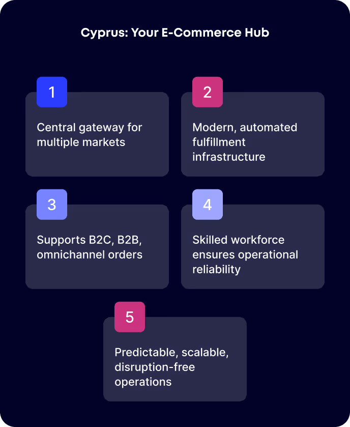 Long-term stability allows businesses to avoid the disruptions associated with frequent relocations or unpredictable regulatory shifts. Cyprus offers a dependable foundation for brands looking to build sustainable and consistent regional fulfillment strategies.