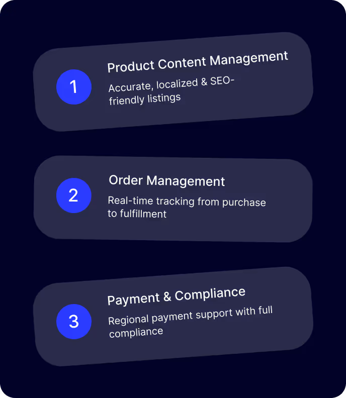 Product Content Management ensures every listing is accurate, localized, and optimized for search engines, helping businesses connect with regional audiences. With Order Management Systems (OMS), companies gain full visibility into each transaction, from checkout to final delivery.